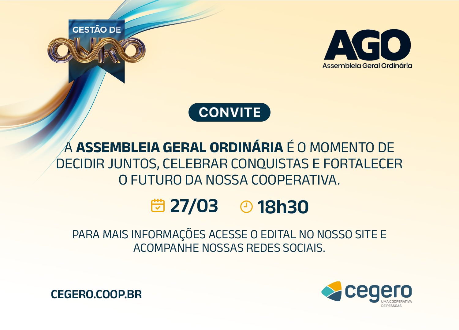 Os editais completos e os relatórios de gestão estão disponíveis na sede das cooperativas e da associação, bem como no site www.cegero.coop.br/assembleias para consulta e download.