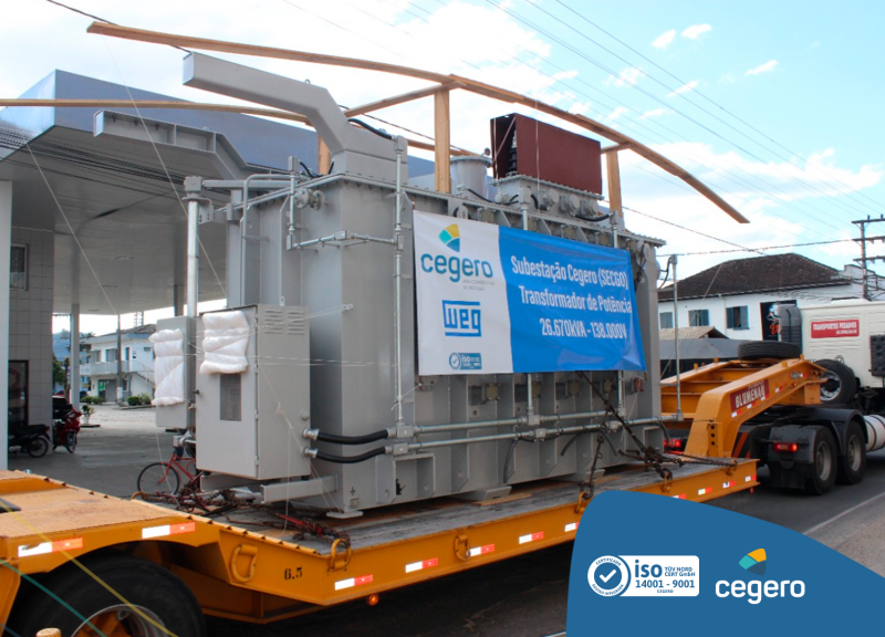 O terceiro transformador, da marca Weg, 138 kV, 20/26 MVA, comprado pela Cooperativa de Eletricidade de São Ludgero (Cegero) para a ampliação da sua subestação, com o objetivo de garantir o fornecimento de energia e desenvolvimento da sua área de atuação, chegou na Subestação Cegero. O investimento no transformador foi de R$ 2.205.436,16. A obra total de ampliação da Subestação deve ser concluída no mês de outubro e chegará num investimento total de R$ 5,5 milhões.