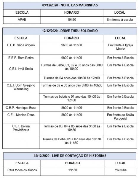 Cada escola do município de São Ludgero proporcionará um momento de encontro com seus alunos através da atividade Drive Thru em horário específico.